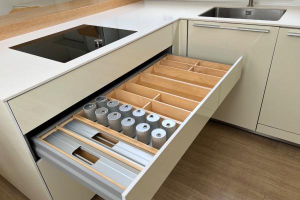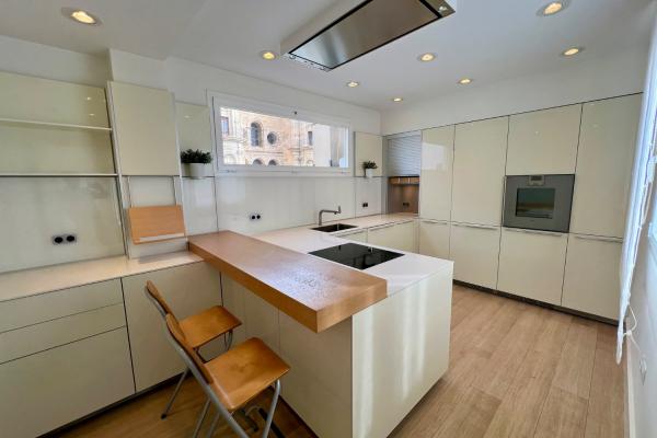 Cocina de alta gama, totalmente amueblada y equipada, con un estilo moderno y funcional.