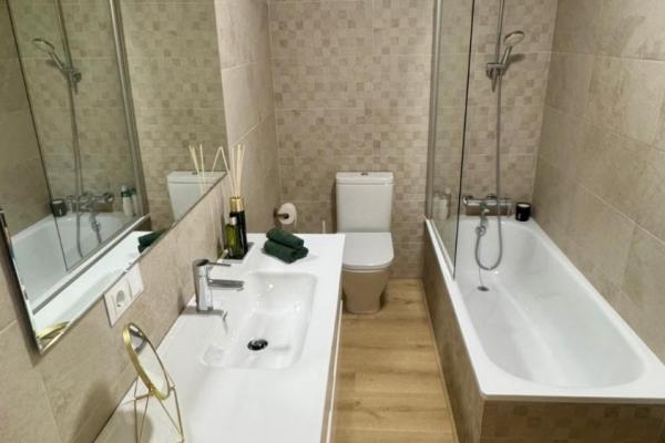 Baño completo con bañera, ideal para disfrutar de un momento de relax.